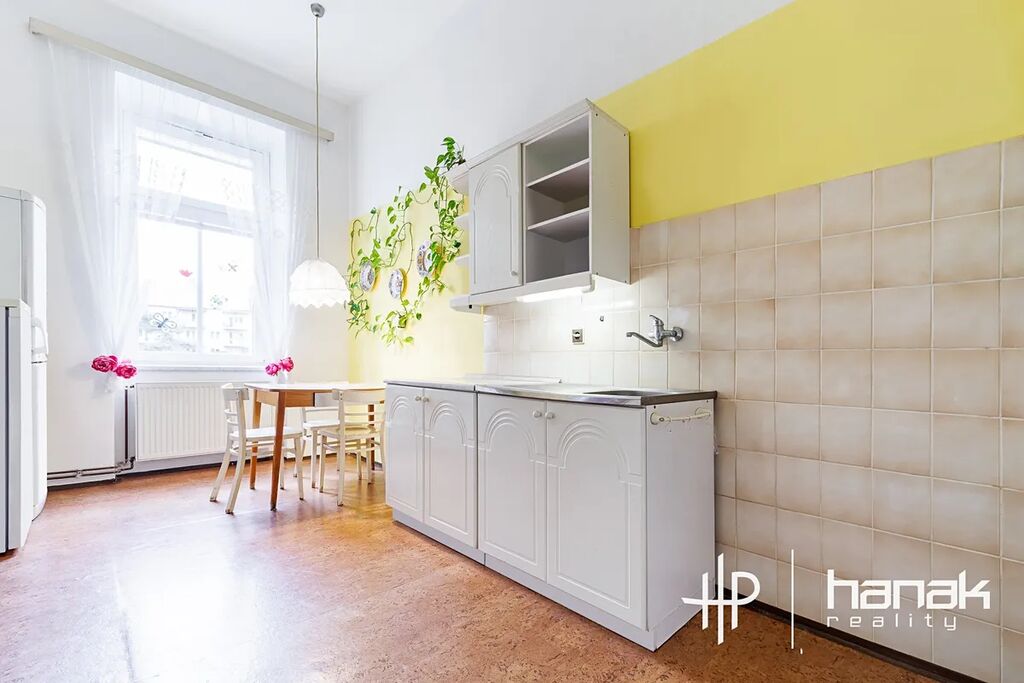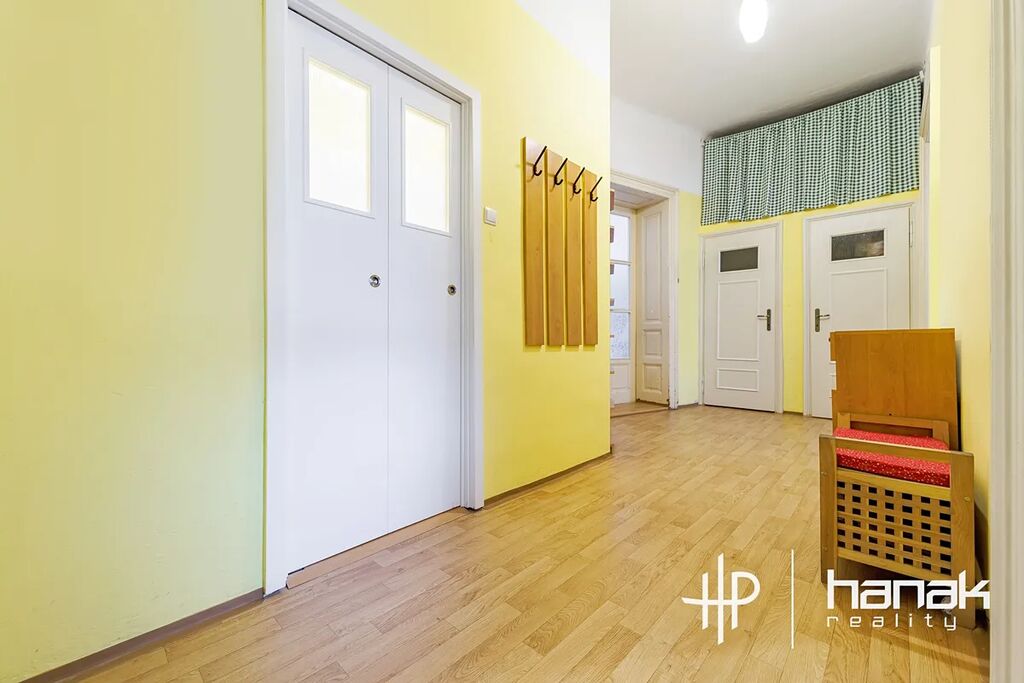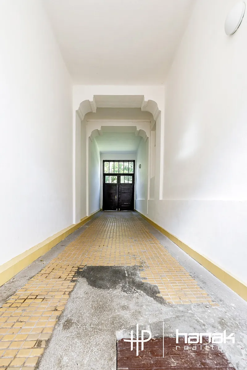Předmětem prodeje je byt o dispozici 3+1 s možností jednoduché přestavby zbudováním příčky na 4-5+1 o užitné ploše 117 m2 ve 2.NP malého cihlového domu. Jeho výhodou je také velmi pohodlné schodiště s dlouhými rameny a udržovaný interiér společných historických prostor. Dům prošel revitalizací fasády, krytiny a výměny oken za plastová s izolačním dvojsklem. Jednotka je orientovaná na jiho-východní stranu a severo-západní do klidné zelené proluky.