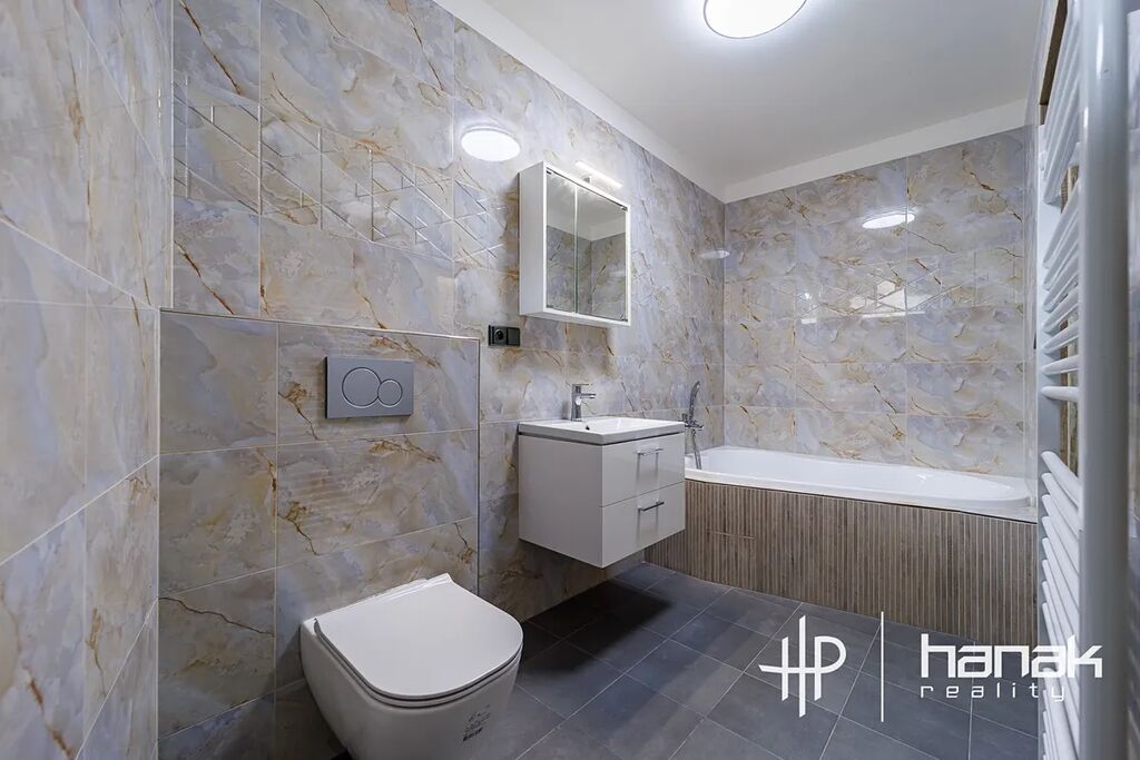 Dispozice v přízemí nabízí prostornou chodbu s průchodem do dvorní části, koupelnu s toaletou a vanou, technickou místnost, velkorysou kuchyni a místnost (38 m2), kterou lze příčkou rozdělit na dva pokoje.