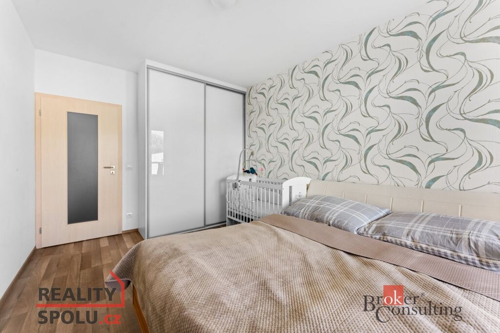 Byt se pronajímá částečně vybaven: kuchyňská linka s vestavěnými spotřebiči včetně myčky, jídelní stůl spojený s kuchyňskou linkou a jídelní židle, vestavěné skříně, koberec a sezení na balkoně. K bytu dále náleží komora v bytě, lodžie se vstupem z obývacího pokoje, sklep a společná kolárna.