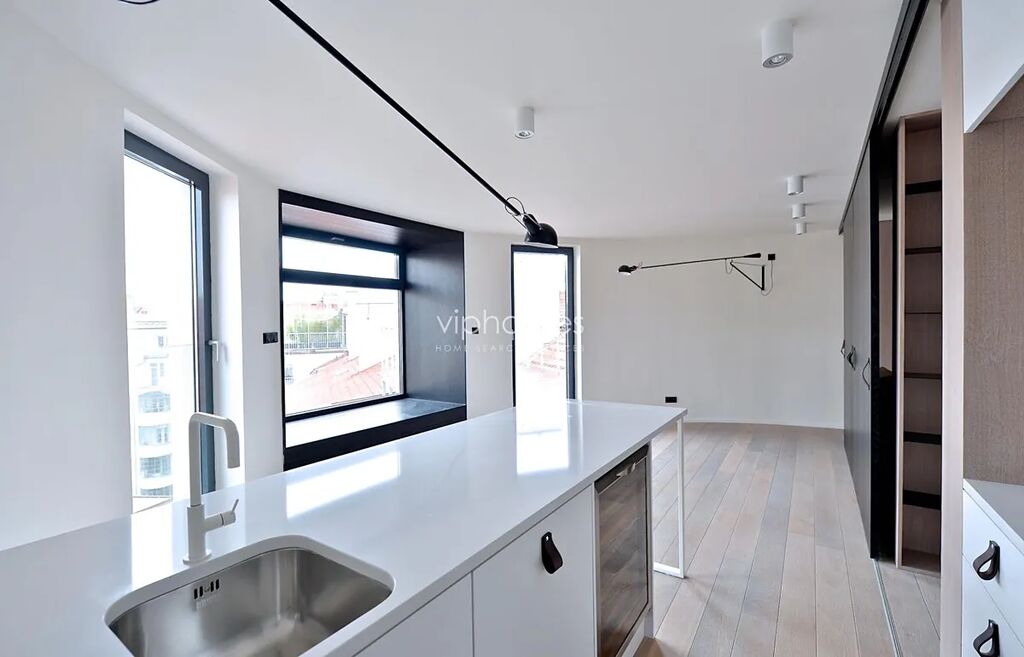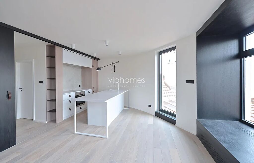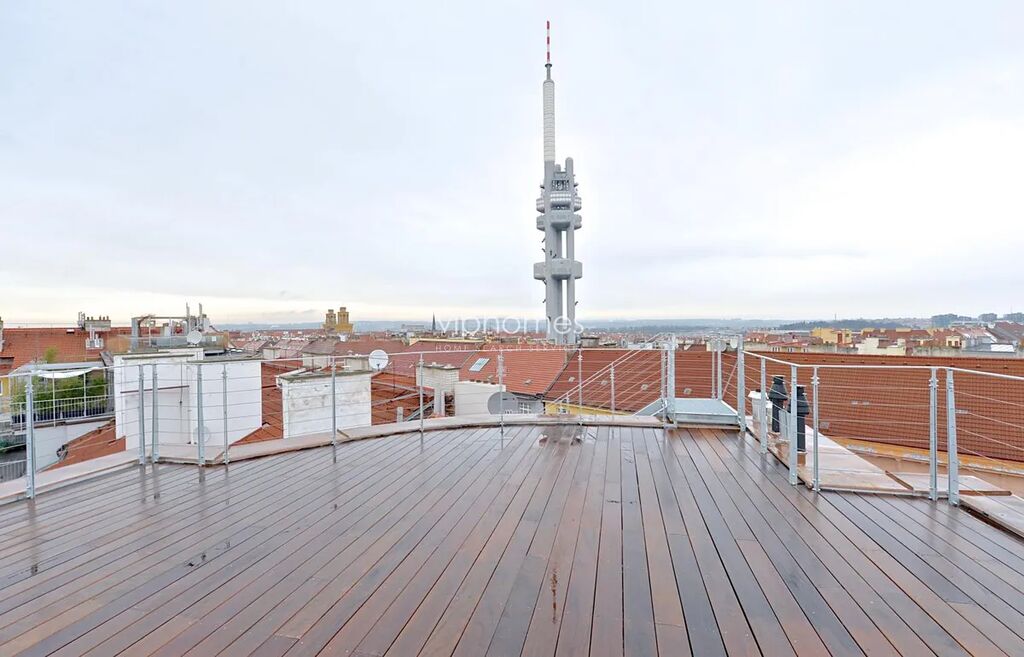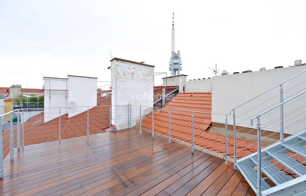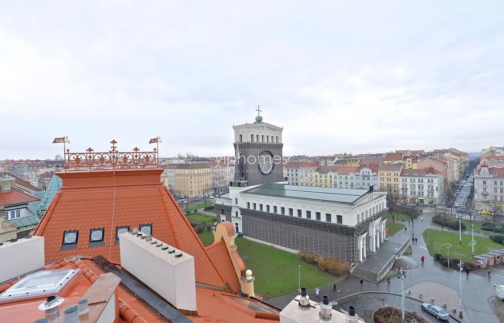 Výjimeční designový byt 2kk, (2 terasy 60 + 40 m2), sitovaný v 5. patře / 6. NP. kompletně zrekonstruované rezidenční budovy v secesním stylu, v jedné z nejžádanějších částí Prahy, přímo na prestižním Náměstí Jiřího z Poděbrad. Budete okouzleni výhledem na avantgardní architektonickou stavbu kostela Nejsvětějšího srdce Páně, osobité dílo slovinského architekta Jože Plečnika a celé náměstí s typickou energií a atmosférou Vinohrad. Najdete zde jak významná nákupní centra např. Palác Flóra a Vinohradský pavilon pro Vaše pohodlné nákupy, tak i divadla (Divadlo na Vinohradech, Smetanovo divadlo), parky a vyhlídky, možnosti k posezení v četných restauracích a kavárnách. Díky výhodnému dopravnímu spojení se brzy dostanete do samotného centra města, ale i za jeho hranice, a to jak automobilem tak MHD.