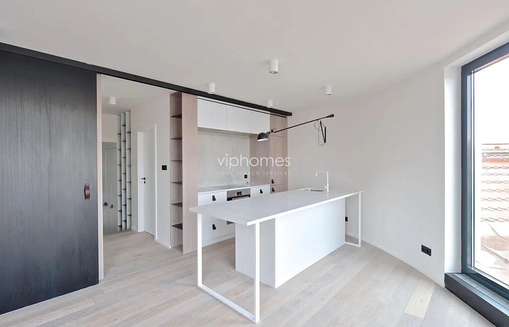 Interiér bytu o velikosti 60 m2 tvoří moderně propojený obývací pokoj s kuchyní, ložnice, minimalisticky pojatá koupelna s toaletou a technické zázemí. Parkety, dlažba, bezpečnostní vstupní dveře, vestavěné skříně, pračka / sušička. Nájem: 49800 CZK / měsíc. Možnost pronájmu garážového stání poblíž za cenu 7.550 Kč měsíčně.