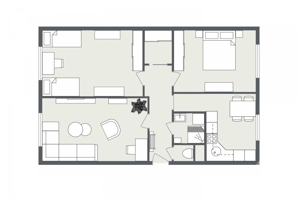 Je to pěkná, prostorná trojka. Celkem asi 76,8 metru bez sklepa. Oddělená kuchyň, tři vetší neprůchozí pokoje, koupelna, záchod a komora. Místa vpysk pro zhruba čtyřčlennou rodinu.
