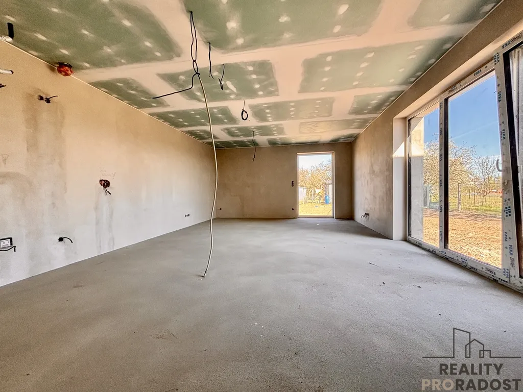 Nabízíme vám novostavbu rodinného domu v obci Tršice (katastrální území Přestavlky) o dispozici 5+kk se zahradou a celkovou výměrou pozemku 509 m².