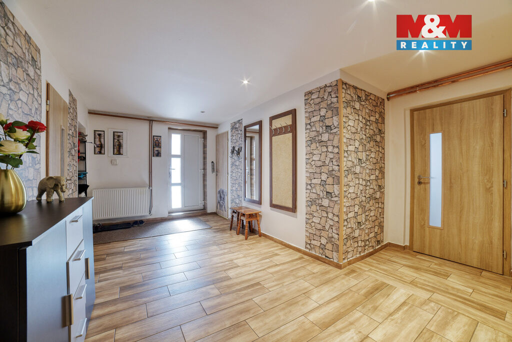 Nabízíme k prodeji jedinečný rodinný dům v obci Týnec, jen 4 km od města Planá u Mariánských Lázní. Jedná se o prostorný dům s možností vícegeneračního bydlení. V přízemí se nachází moderně renovovaný byt 3+1 o velkorysé výměře více jak 150 m2 3+1 a nespornou výhodou je také podkroví domu, kde může vzniknout další samostatná bytová jednotka s již vybudovaným vlastním sociálním zázemím. Vytápění domu zajišťuje kombinovaný kotel na tuhá paliva s rozvody do radiátorů, voda je přivedena z veřejného vodovodu a odpady jsou svedeny do žumpy. Ohřev vody zajištuje kombinovaný bojler. Na první pohled Vás jistě zaujme stylový interiér zejména moderní kuchyně i obývací pokoj s velkým krbem. Na pozemku s celkovou výměrou 847 m2 je také prostorná dílna s možností parkování auta a krytá terasa. Obec Týnec nabízí klidné bydlení na vesnici s velmi krátkým dojezdem do města Planá (4 km), kde nalezneme veškerou občanskou vybavenost. Nezmeškejte tuto jedinečnou příležitost a domluvte si prohlídku.