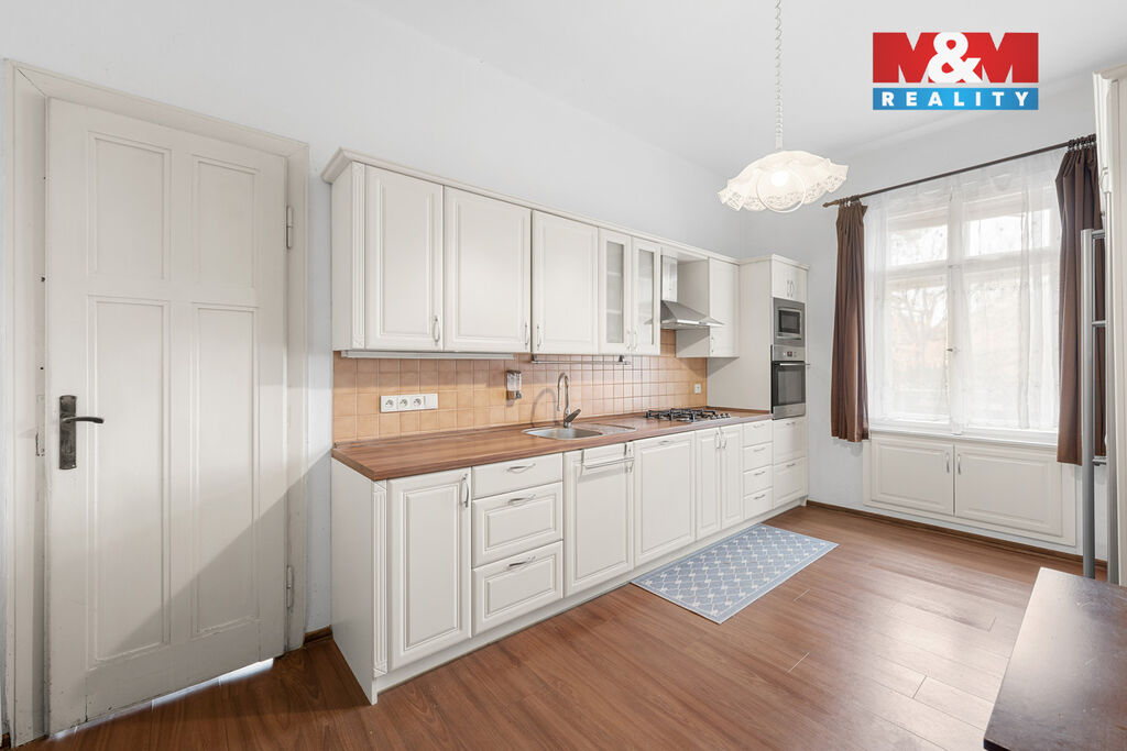 Nabízíme k prodeji mezonetový byt v prvorepublikové vile s bohatou historií sahající až do roku 1913, která si dodnes uchovává svůj původní charakter a jedinečnou atmosféru. Byt má samostatný vstup ze zahrady a je dispozičně řešen jako dvoupodlažní o užitné ploše 150 m². V přízemí se nachází předsíň a prostorná hala se schodištěm do horního podlaží, kde najdete galerii, kuchyň, světlý obývací pokoj s balkónem, ložnici s přímým vstupem na terasu a pokoj pro hosty s dalším balkónem. Kuchyň a koupelna prošly rekonstrukcí před devíti lety – kuchyň je vybavena vestavěnými spotřebiči a americkou lednicí s výrobníkem ledu, koupelna nabízí vanu i sprchový kout. K bytu náleží možnost užívání rozlehlé, udržované zahrady o výměře 1 402 m² se vzrostlými stromy. Byt se prodává plně vybaven. Pomůžeme Vám i s optimálním financováním zcela zdarma. Pro více informací kontaktujte makléře.