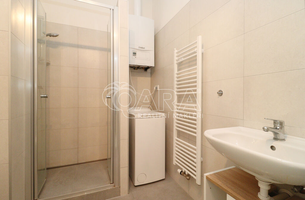 V bytě se nachází kuchyň vybavená kuchyňskou linkou na míru, sklokeramickou varnou deskou, digestoří, zabudovanou myčkou a mikrovlnnou troubou (možnost odkupu). Koupelna je spojena s WC a je vybavena pračkou na prádlo s horním plněním (k odkupu).