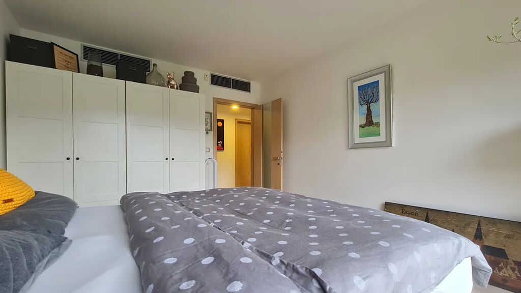 V bytě najdete vše, co potřebujete: prostornou komoru, tři ložnice, koupelnu s vanou i sprchovým koutem a samostatné WC pro hosty.