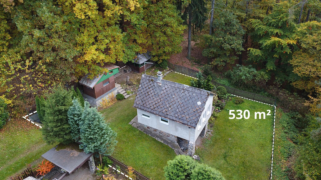 Samozřejmostí je septik a vrtaná studna 110 mm o hloubce 21m. Konstrukce chaty je dřevěná, vyplněná skleněnou vatou a izolací.