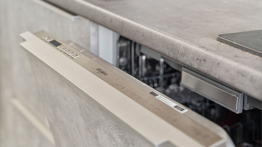 • Kuchyně připravena: Nová kuchyňská linka se spotřebiči Whirlpool, připravená pro vaše kulinářské umění.