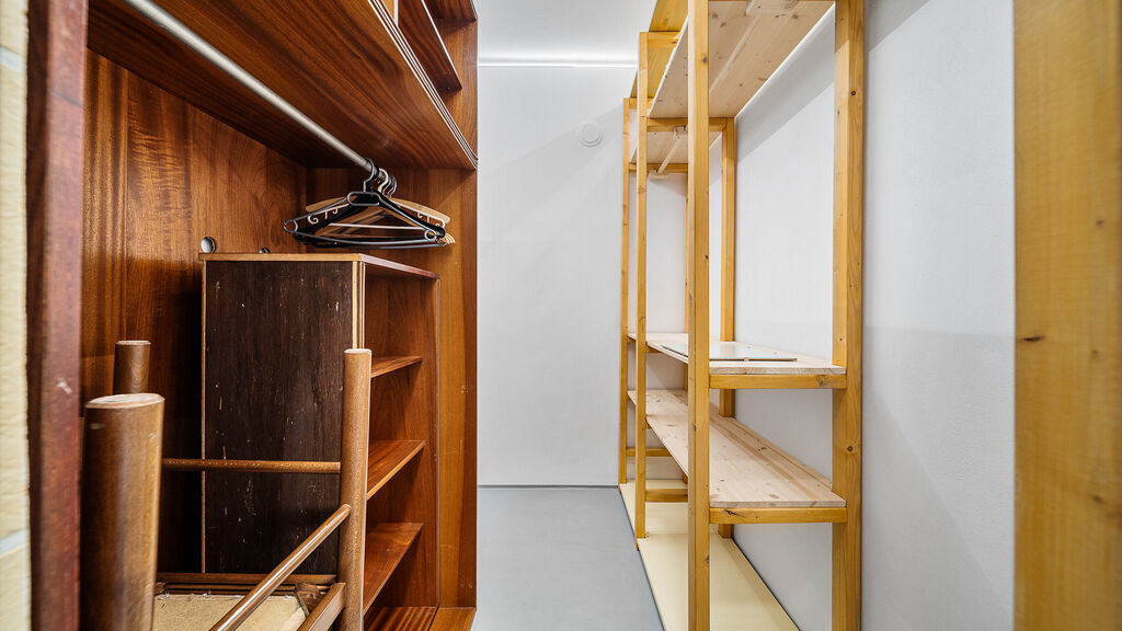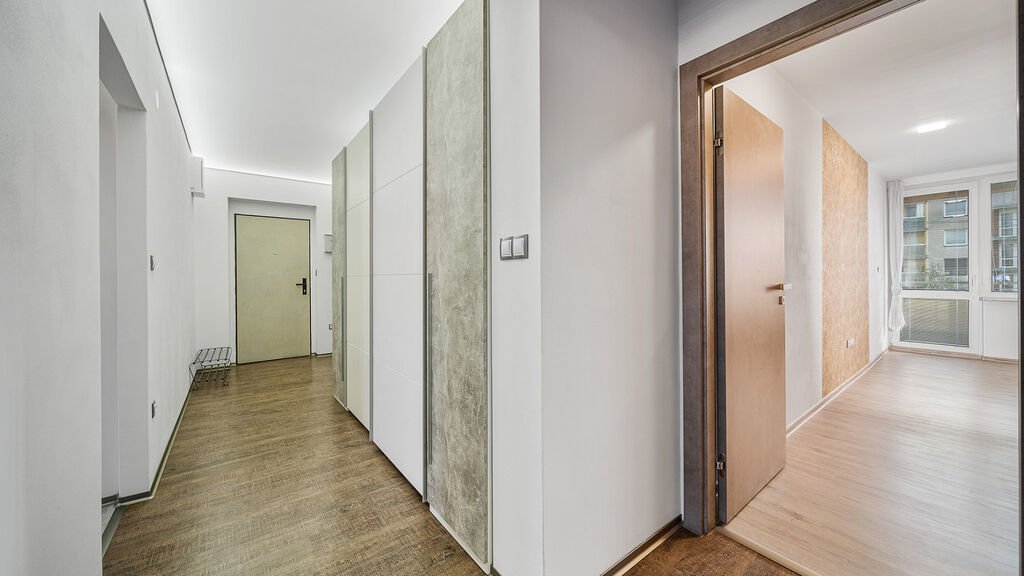 • Úložný prostor: V bytě je vybudovaná šatna a na chodbě a v obýváku stojí vestavěné skříně.