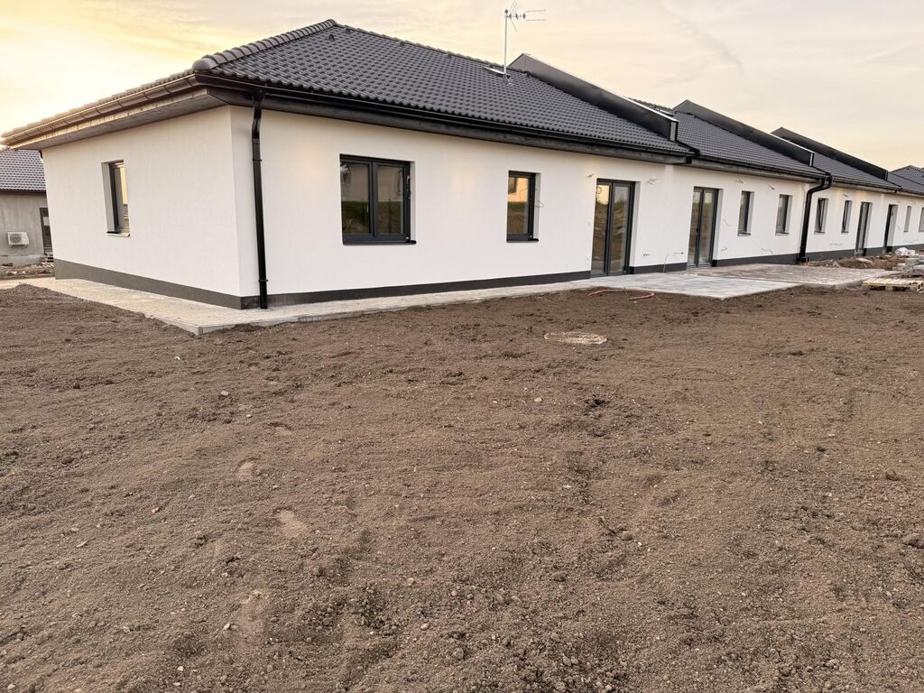 Nabízíme k prodeji RD - krásnou novostavbu typu bungalov, 5+kk, 94 m2 v obci Staré Nechanice. Nabízený řadový krajový rodinný dům je určený k bydlení pro 4 až 5 člennou rodinu. Obývací pokoj je spojen s kuchyňským koutem, dále se zde nachází 4 pokoje, prostorná koupelna s vanou a sprchovým koutem, oddělená toaleta a technická místnost. Střešní krytina Besk, postaveno z cihelného zdiva Heluz Family 38 cm. Vytápění je podlahové, pomocí tepelného čerpadla. Energetická náročnost budovy je třídy B. V podstřešním prostoru je vybudován úložný prostor o velikosti cca 18 m. Celý RD je postaven v silném nadstandardu - trojskla, vinylové podlahy, kvalitní dveře, velkoformátové obklady, atd. Před domem je velké parkovací stání pro dva osobní automobily, z obývacího pokoje je vstup na prostornou terasu. Okolo domu je zhotoven chodník a pozemek kompletně upraven, srovnán. Rodinný dům je kompletně dokončený a ihned k nastěhování. RD se nachází v lukrativní části novostaveb - celá lokalita je kompletně zasíťovaná - dešťová kanalizace, splašková kanalizace, vodovod, asfaltová komunikace, optický kabel, veřejné osvětlení, elektřina. IS, včetně komunikace jsou zkolaudovány. Dostupnost - pouze 12 km od Hradce Králové a 10 km od Nového Bydžova, výborné spojení i směr Praha - 10 km sjezd na dálnici D11. Staré Nechanice jsou městskou částí města Nechanic, kde je kompletní občanská vybavenost. Právní servis a financování Vám zajistíme zdarma.