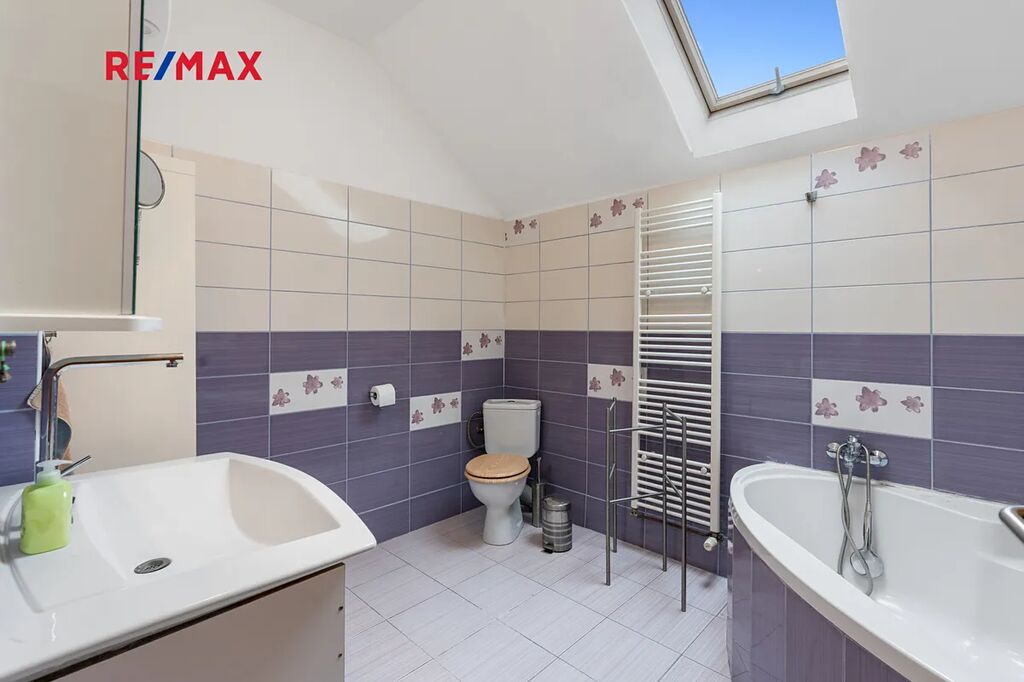 V patře najdete chodbu, tři samostatné pokoje, prostornou koupelnu s velkou vanou a WC, a také technickou část s novým plynovým kotlem a elektrickým bojlerem pro ohřev vody, který je napájen fotovoltaickými panely umístěnými na střeše domu.