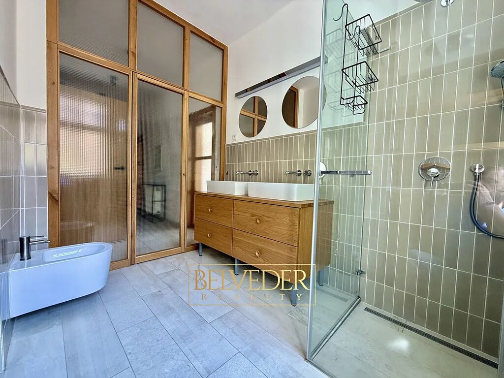 Součástí bytu jsou navíc dvě další místnosti (44 m²) umístěné o patro níže, které doplňuje vlastní sociální zázemí (sprchový kout a toaleta). Tyto prostory nejsou vedeny jako samostatná bytová jednotka, ale tvoří praktické rozšíření bytu a nabízejí široké možnosti využití – například jako pracovna, ateliér, pokoj pro hosty nebo zázemí pro podnikání.
