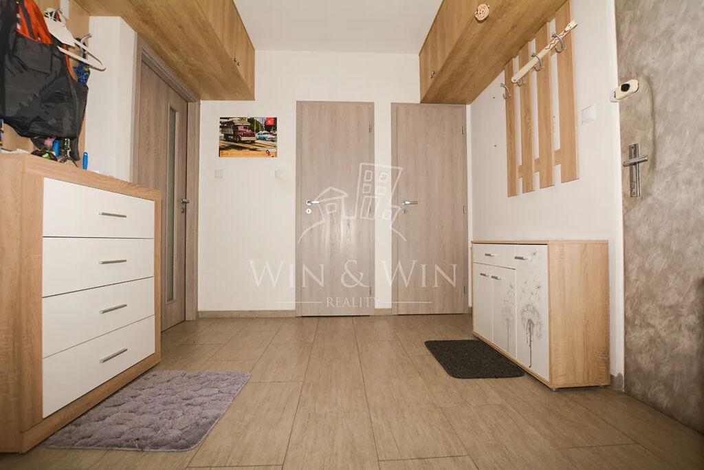 Dispozice bytu je tvořena obývacím pokojem s jídelnou a kuchyní, koupelnou, toaletou, chodbou, světlou ložnicí, dětským pokojíčkem a velkou zasklenou lodžií. Každou ženu jistě zaujme kuchyňská linka Oresi s praktickými zabudovanými spotřebiči včetně pračky, myčky na nádobí, vestavěné trouby a kvalitní plynové desky. Bytová jednotka prošla kompletní nákladnou rekonstrukcí a je nadstandardně vybavená. Součástí vybavení jsou vestavěné skříně od truhláře. Ostatní nábytek který se nachází na fotografiích byl užíván pouze majiteli a bude odvezen. Bytová jednotka je pod dvojím uzamčením (mříže před bytem ) a má k dispozici sklep přímo vedle bytu.