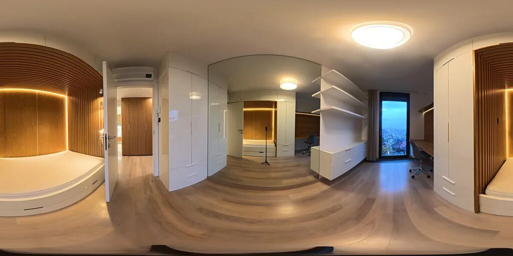 Byt disponuje dvěma dětskými pokoji, které jsou vybaveny rozkládací postelí, pracovním stolem a šatní skříní. Oba pokoje lze navíc propojit otevírací příčkou. Další místností je ložnice s manželskou postelí a velkou vestavěnou šatní skříní.