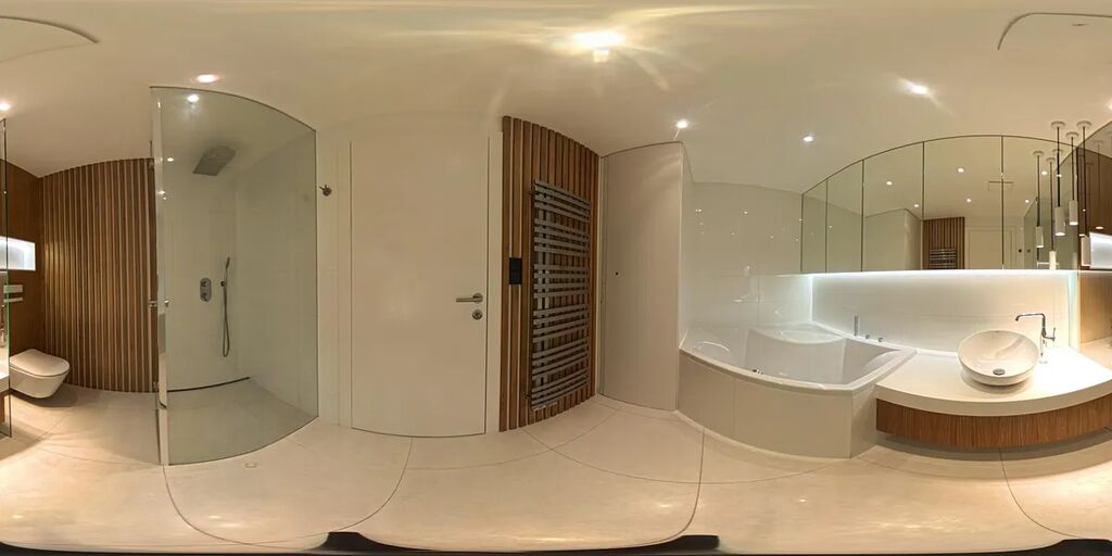 Koupelna je vybavena prostornou vanou, samostatným sprchovým koutem, toaletou, pračkou a sušičkou. Další toaleta je umístěna samostatně.