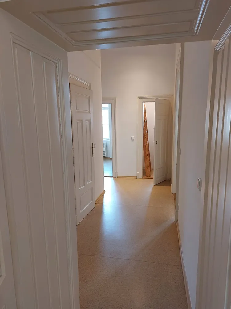 Jedná se o částečně zrekonstruovaný byt o celkové ploše 75 m², umístěný ve 3. NP./5. cihlového domu bez výtahu.