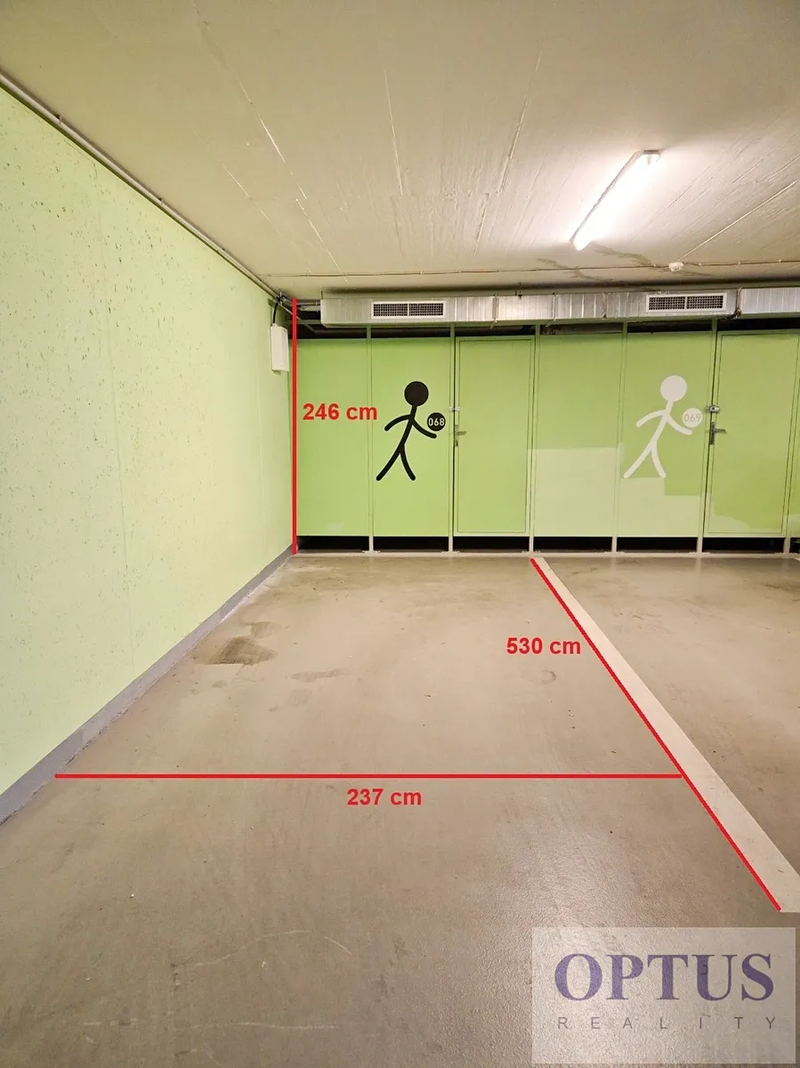 Nabízíme k pronájmu 1 podzemní garážové stání o velikosti 12,5 m2 s přiléhající sklepní kójí o velikosti 4,3 m2, nacházející se ve 2. suterénu podzemních garáží Rezidence Šaldova na Praze 8 –Karlíně, ul. Šaldova 219/1.