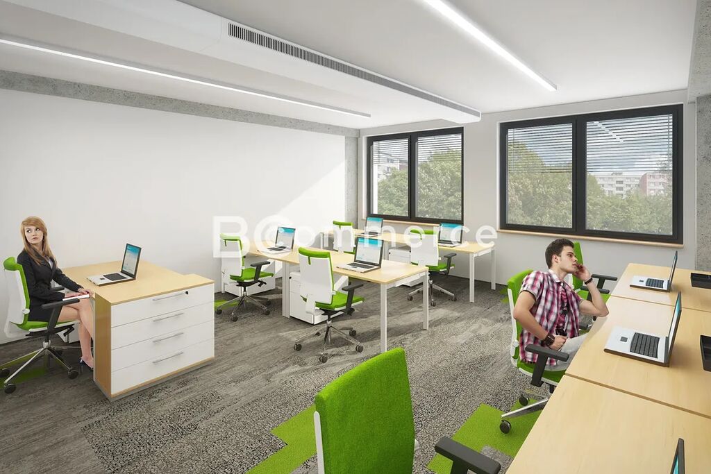 Kancelář je vybavena zátěžovým kobercem,, úsporným LED osvětlením, vnějšími žaluziemi, kazetovým stropem a nabízí tak veškerý komfort svým nájemcům.