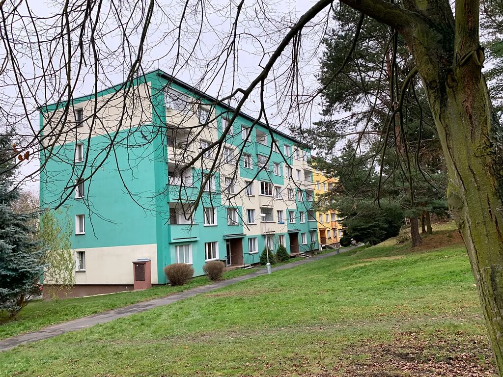 Byt je situován ve 3. patře revitalizovaného panelového domu s výtahem. Dispozici tvoří vstupní chodba, obývací pokoj s kuchyňským koutem a koupelna. V koupelně je sprchový kout, umyvadlo a oddělené WC (předělené polo příčkou).