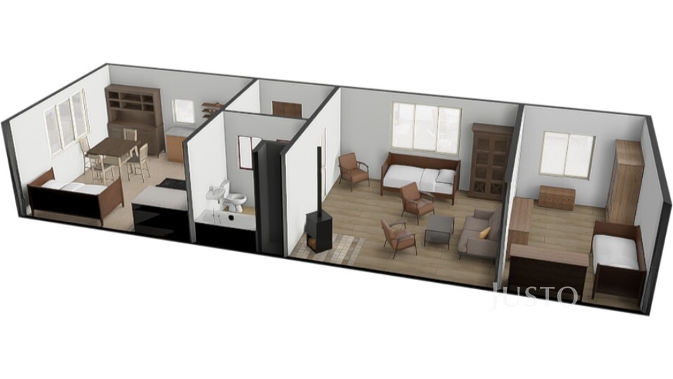 Příběh tohoto místa dávají tušit už samotná vrátka do uzavřeného dvorku. Když vstoupíte, ucítíte klid, bezpečí a zákoutí pro letní posezení i odpočinek. V bytové části chalupy najdete dvě průchozí místnosti, kde jsou doslova zachyceny vzpomínky na společně strávené večery i rodinné oslavy. Prostorná kuchyně o výměře 20 m² s tradiční pecí a vyhřívárnou navodí atmosféru opravdového domova, kde může vznikat ta nejlepší domácí kuchyně. Na koupelnu s vanou a toaletou navazuje předsíň, která dává prostoru útulný rámec.
