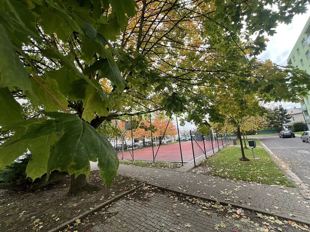 Přímo před domem je multifunkční hřiště, parkování pod okny.