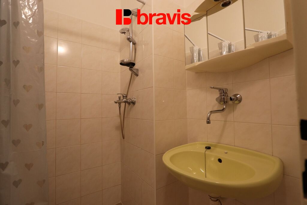 Byt se nachází v 1. patře cihlového domu s výtahem. Celková plocha bytu je 22m2.