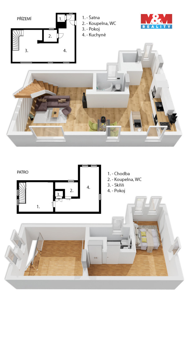 Hledáte zrekonstruovaný dům na Berounsku, kam si pouze přivezete své osobní věci a můžete ihned bydlet? Zdařile zrekonstruovaný rodinný dům v obci Bavoryně o dispozici 3+kk má dvě koupelny, terasovitou zahradou orientovanou na jih, garáž i sklad. Na dvoře je kryté zahradní posezení připravené pro grilování a místo pro vířivku. Garážové stání si můžete zastřešit dle vlastní volby. Krbová kamna v obývacím pokoji vytvářejí teplo domova a příjemnou atmosféru. Pouhou změnou umístění schodiště lze získat plnohodnotnou místnost v podkroví. Bavoryně je součástí města Zdice, které nabízí základní občanskou vybavenost, včetně mateřské a základní školy, což z něho činí ideální místo pro rodinný život. Vedlejší obec Beroun nabízí vše, co je potřeba k životu. Krásná okolní příroda láká k výletům do lesů či na historické památky. Sjezd z D5 ve Zdicích je vzdálen 1 minutu, Beroun 11 minut, Zličín 20 minut, Plzeň 55 minut jízdy autem. Autobusová zastávka pár kroků od domu s PID 384 je jako bonus.