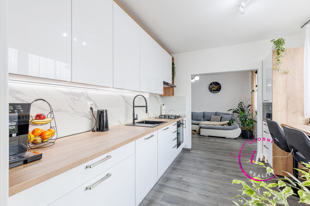 Panelový dům v novém kabátě, jasně že s výtahem a v něm byt, třiplusjednička po rekonstrukci, kde se budete cítit jako doma.