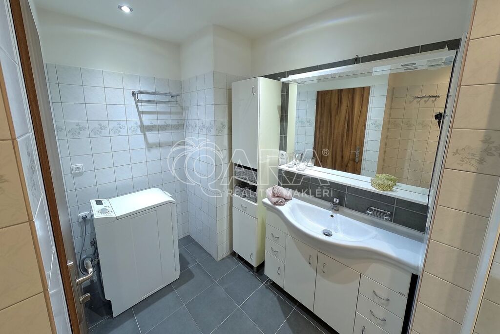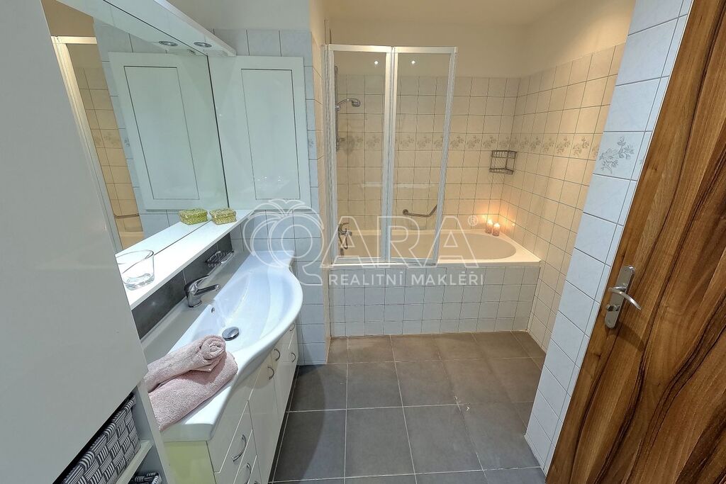 Dále je k dispozici prostorná vstupní chodba s vestavěnými skříněmi, moderní koupelna s vanou a samostatné WC.