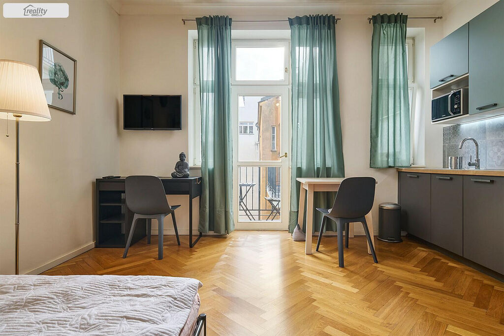 Prodáme velmi pěkný, udržovaný, zařízený byt o výměře 25 m² + balkon 2 m². Tento byt k prodeji se nachází ve 5. patře secesního, zrekonstruovaného domu s výtahem. Byt je velmi šikovně řešený, je zde koupelna se sprchou a WC, předsíňka a samostatný pokoj s kuch. koutem. Kuchyňská linka je vybavena všemi spotřebiči vč. základního nádobí. Pokoj je zcela zařízený. Z pokoje je výstup na balkon orientovaný do tichého vnitrobloku. Byt skýtá veškeré pohodlí a vysoký standard bydlení pro svého uživatele. K bytu patří sklepní kóje umístěná v suterénu domu. Nespornou výhodou tohoto bytu je jeho umístění nedaleko parku Jiřího z Poděbrad a nedaleko několika zastávek MHD jak autobusových tak tramvajových linek tak i stanice metra.. V pěší vzdálenosti se nachází veškeré obchody, restaurace, pošta, zdravotní středisko atd.. Krásný byt, ve výjimečné lokalitě. Vhodné na i na investici.