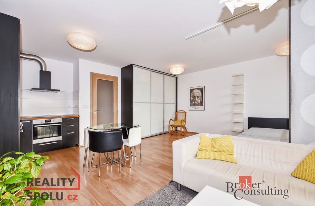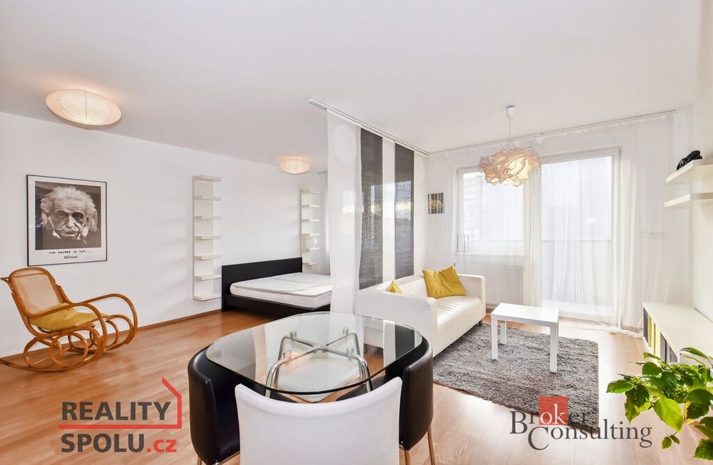 Nabízíme k pronájmu kompletně zařízený byt 1+kk (původně 2+kk) o celkové ploše 49,3 m2, na adrese Matějkova, Praha 9 - Libeň. Byt se nachází v 5. patře ze 6.p. v hezké lokalitě v blízkosti parku Podviní. Byt je připraven ihned k nastěhování k dlouhodobému pronájmu. Dispozice bytu je následující: předsíň, koupelna společná s toaletou (umyvadlo, sprchový kout), komora (3,5 m2) s pračkou, obytná místnost s kuchyňským koutem (35 m2) a balkon (4,5 m2) . Součástí kuchyňské linky jsou vestavné spotřebiče (elektrická varná deska, trouba, odsavač par, myčka a lednice s mrazákem). Orientace bytu je na jihozápad, okna jsou vybavena předokenními roletami. Součástí pronájmu je veškeré vybavení bytu dle fotografií, dále v suterénu domu sklep ( 2,5 m2) a parkovací stání (zakladač). Občanská vybavenost je v bezprostřední vzdálenosti domu, nedaleko se nachází OC Harfa a NC Fenix, O2 arena. Lokalita je výborná pro volnočasové aktivity. Park Podviní, kterým protéká potok Rokytka s cyklostezkou, je u hned vedle domu, dále pak i sportovního areálu Unyp Arena. Je zde i výborná dopravní dostupnost MHD, pár metrů od domu se nachází tramvajová zastávka Divadlo Gong s trasou na metro "C" Florenc, nebo "B" Vysočany, zde s možností přestupu na vlak.