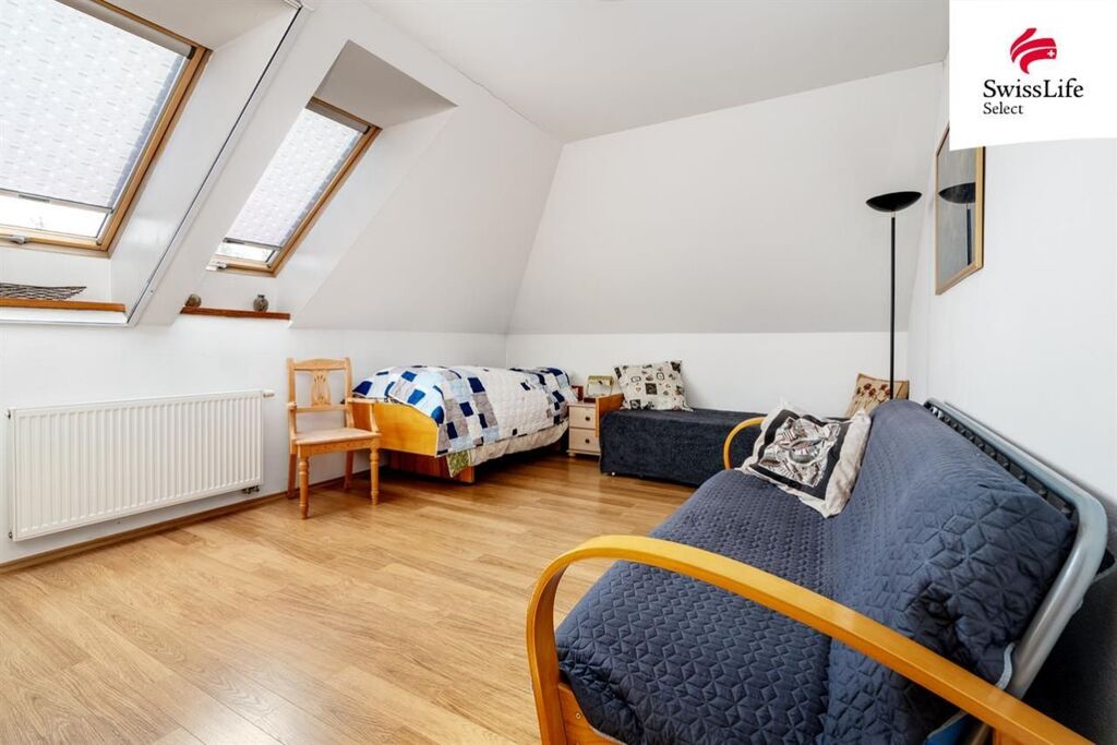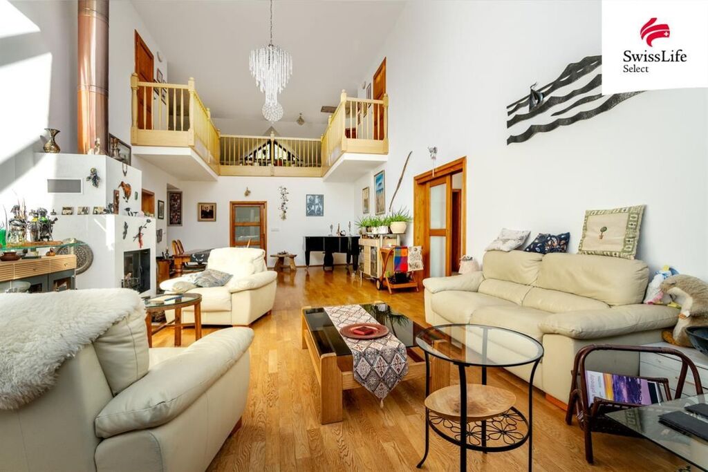 Uvnitř domu vás přivítá příjemná atmosféra, promyšlený interiér a více než dostatek přirozeného světla. Celé přízemí je kompletně bezbariérové. Dispozice navržená panem ing. arch. Milanem Šindlerem zahrnuje prostorný centrální obývací pokoj s částečně proskleným stropem a s francouzským oknem vedoucím na zastíněnou terasu, kuchyň se spíží, s linkou z masivu a s venkovním útulným posezením pro dva, dále tři samostatné ložnice s koupelnami, tři pokoje (hudebna, pracovna, technická místnost) a v neposlední řadě vnitřní verandu nad obývacím pokojem proměněnou ve studovnu a čítárnu ideální místo pro chvíle ticha, vůni knih a klidné večery. V domě se dále ještě nachází velká vstupní hala, šatna, čtvrtá koupelna (s pračkou, sprchovým koutem a toaletou) a další samostatná toaleta vedle pracovny. Co nemohu ve svém výčtu opomenout, je krásná sauna v prvním patře, vedle které je k dispozici sprchový kout. Půda domu je připravena pro vestavbu, kterou je možné získat další prostory k bydlení.