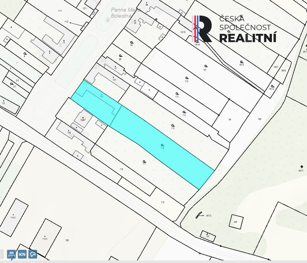 Parcela číslo 101 - zastavěná plocha a nádvoří, výměra 865m2 - součástí je stavba rodinného domu.