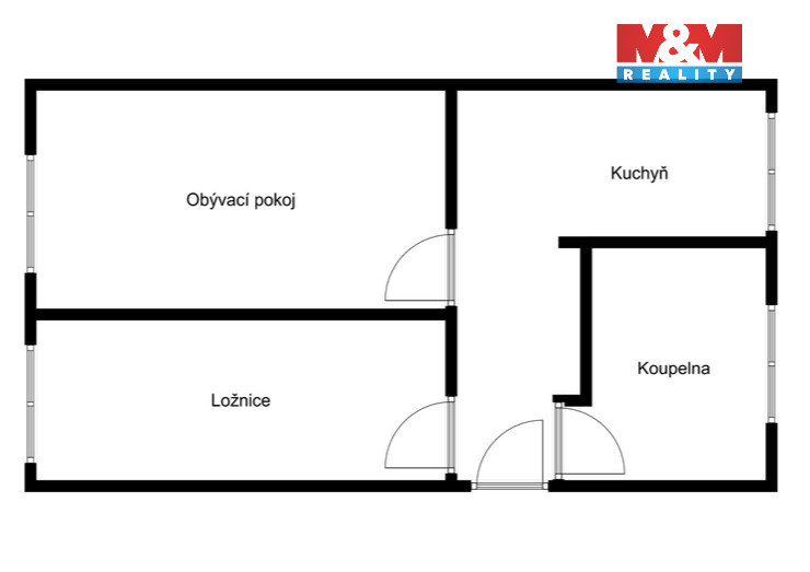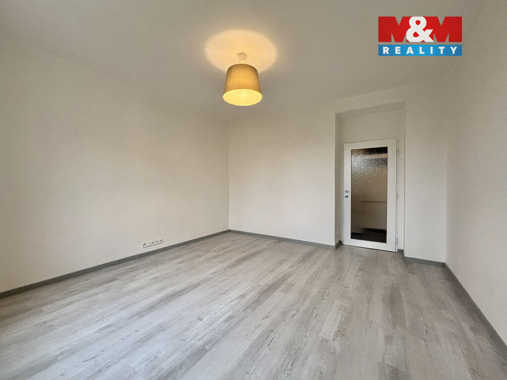 Dispozice zahrnuje vstupní chodbu, novou moderní koupelnu s WC, obývací pokoj, ložnici s vestavěnou prostornou skříní a kuchyň vybavenou troubou, sporákem, digestoří a místem pro jídelní kout.