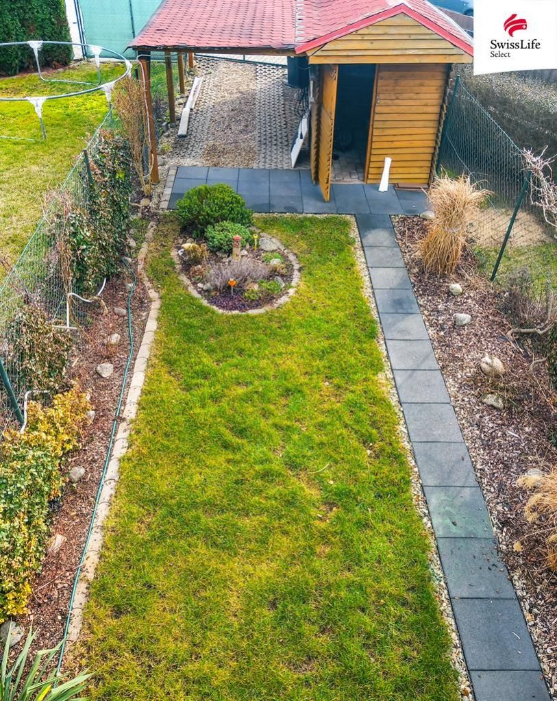 K domu náleží zahrada, dvě parkovací stání před domem a samostatná garáž ( 48m),
