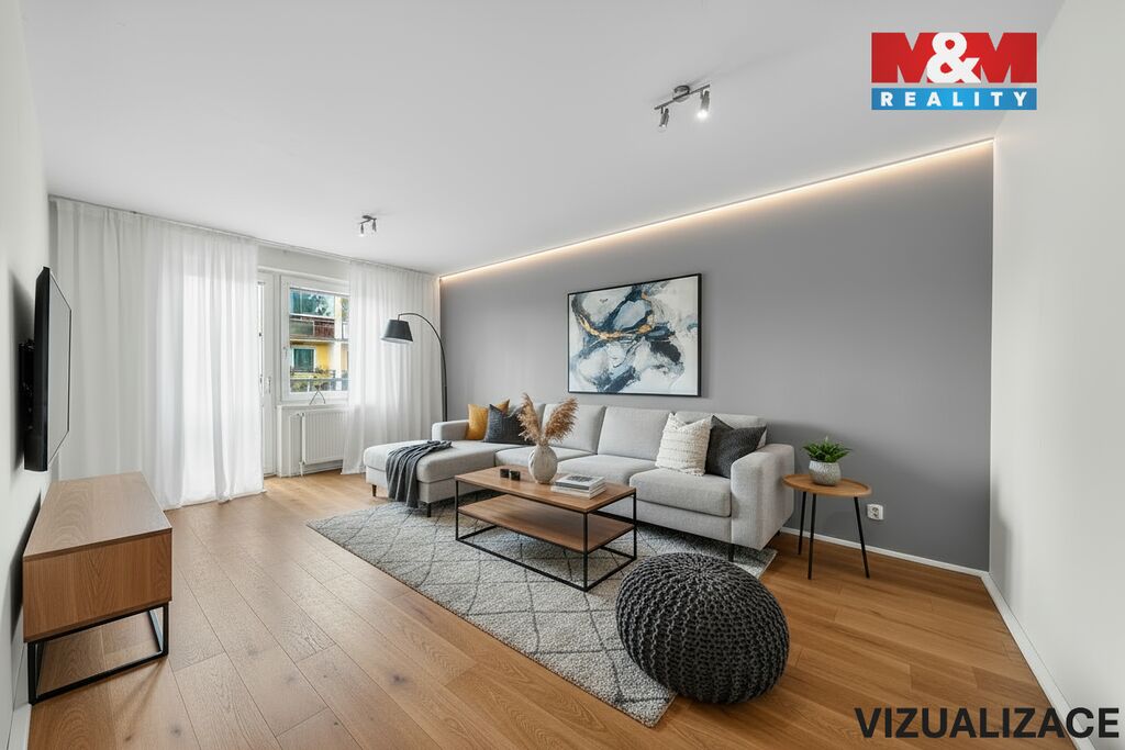 Byt je určen k rekonstrukci. Bytové jádro je zděné, koupelna a WC jsou oddělené. Po vstupu do bytu se ocitnete v prostorné chodbě s přístupem do obývacího pokoje a na lodžii, dále do šatny, koupelny s vanou a na samostatné WC. Vlevo od vstupu se nachází dva pokoje a kuchyně se vstupem na druhou lodžii.