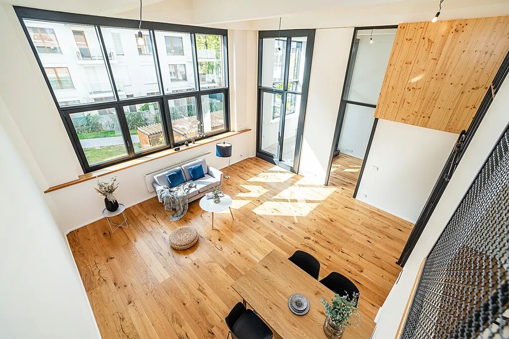 Byt disponuje podlahovou plochou 64,1 m2 a díky dvěma galeriím a zasklené lodžii (dalších 20 m2 navíc) působí opravdu velmi stylově a především světle a vzdušně.
