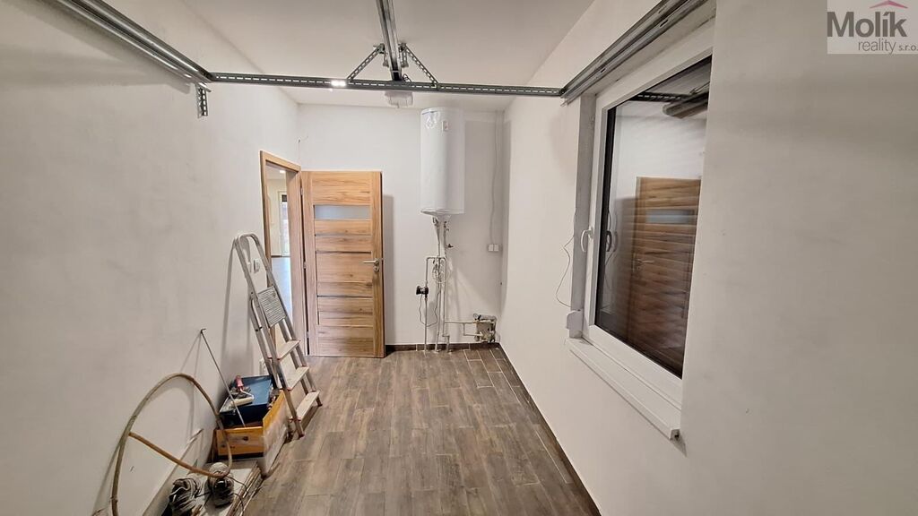 Součástí domu je garáž a zahrádka, k dispozici jsou 3 koupelny.