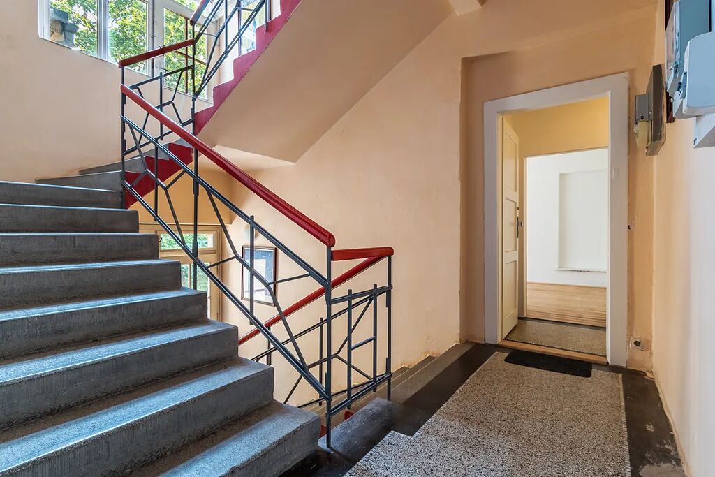 Byt se nachází v klidné ulici Fabiánova, pár minut pěšky od tramvajové zastávky Kavalírka. 7 minut tramvají, trvá cesta z Kavalírky na stanici metra Anděl (B), která zajistí perfektní spojení městskou hromadnou dopravu do centra města.