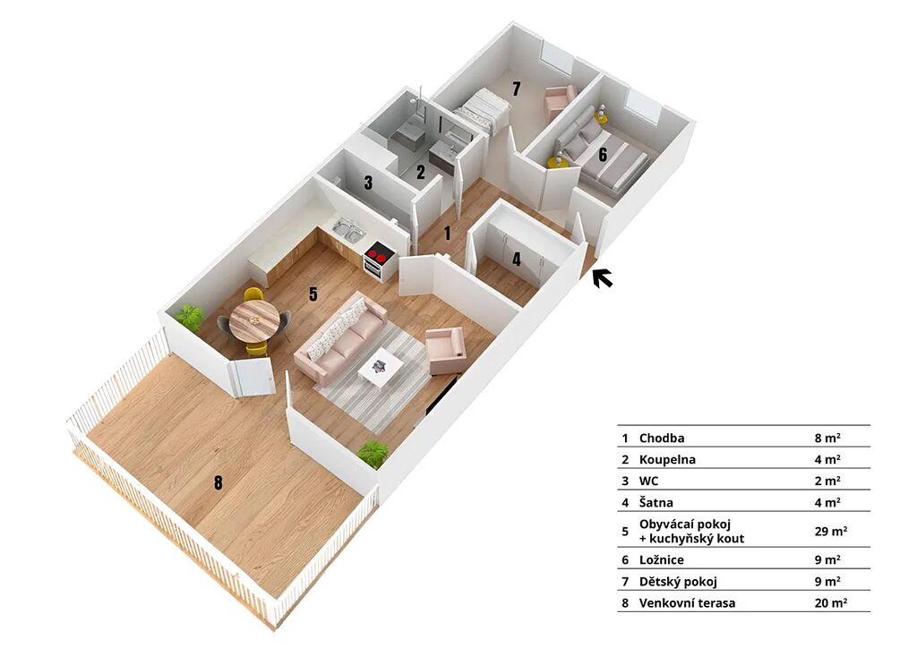 - k bytu náleží sklep (2m2) a terasa (29m2)