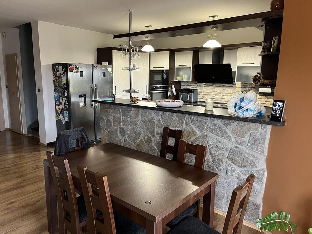 Nabízíme k prodeji prostorný a velmi dobře udržovaný rodinný dům nacházející se v oblíbené obci Vítězná, pouze několik minut od Dvora Králové nad Labem. Tato lokalita je ideálním místem pro ty, kteří hledají harmonické spojení klidného bydlení na venkově s výbornou dostupností městské infrastruktury. Okolní příroda, lesy a turistické trasy jsou doslova na dosah, což z domu činí ideální volbu pro milovníky aktivního životního stylu. Dům je samostatně stojící a obklopený pečlivě udržovanou a plně uzavřenou zahradou, která zaručuje absolutní soukromí. Výstavba byla zahájena v roce 2008 a kolaudace proběhla v roce 2011, což znamená moderní konstrukční řešení a použití kvalitních materiálů. Nemovitost je ve výborném technickém stavu a připravena k okamžitému užívání bez nutnosti větších investic. Dominantou zahrady je krásný bazén se slanou vodou, který poskytuje příjemné osvěžení v letních měsících, a stylová finská sauna pro relaxaci během celého roku. Zahrada nabízí nejen dostatek prostoru pro odpočinek či rodinné aktivity. Dům je navržen s důrazem na komfortní a energeticky úsporné bydlení. Kombinace tepelného čerpadla, solárního systému a krbové vložky výrazně snižuje provozní náklady, které jsou dlouhodobě na velmi nízké úrovni. Dispozice 5+kk s celkovou obytnou plochou 192 m poskytuje dostatek prostoru i početnější rodině. Interiér je světlý, vzdušný a nabízí prakticky řešené místnosti, které lze snadno přizpůsobit individuálním potřebám nových majitelů. Pro snazší úklid nechybí ani centrální vysavač. Pozemek o rozloze 1 386 m je ideální kombinací soukromí, příjemného prostředí a variability využití. Samotná zahrada je orientována tak, aby poskytovala maximum slunečního světla po celý den. Tato nemovitost představuje jedinečnou příležitost pro ty, kteří hledají moderní, pohodlné a energeticky efektivní bydlení v krásné a klidné lokalitě. Doporučujeme osobní prohlídku, při které nejlépe oceníte příjemnou atmosféru domu i jeho okolí.