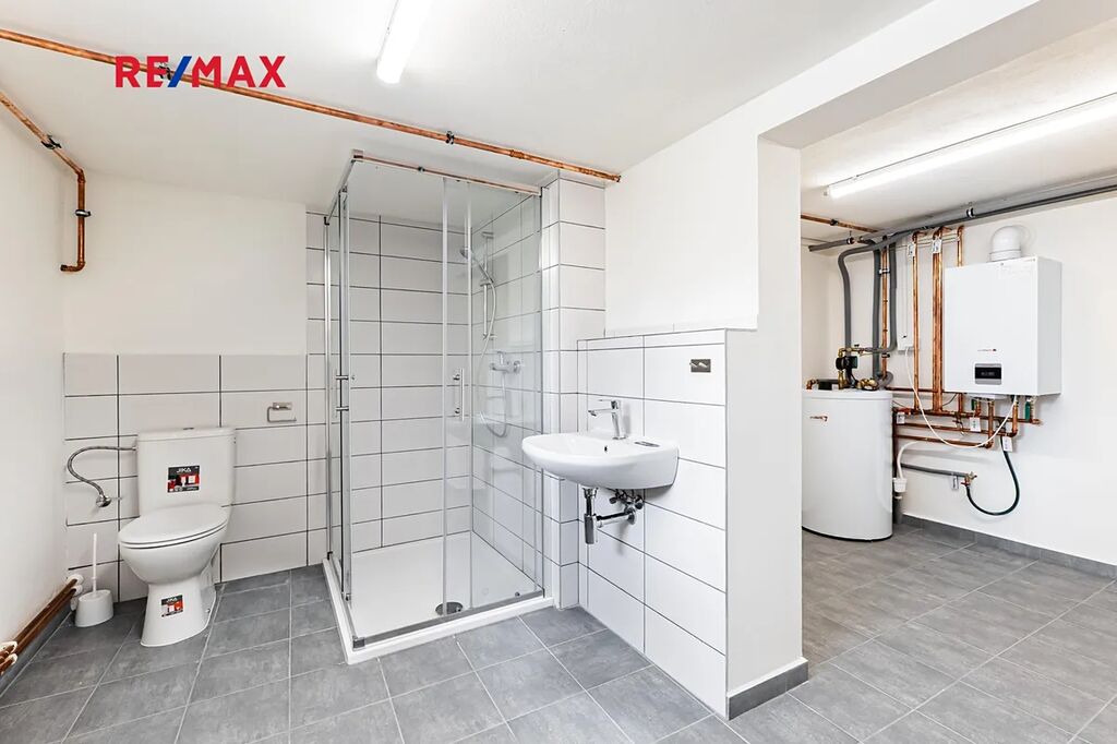 V suterénu najdete garáž (přičemž parkovat lze i na parkovišti u domu), technické zázemí, dostatek úložného prostoru a navíc spoustu místa třeba pro domácí posilovnu nebo saunu. Nechybí zde ani sprcha s toaletou, kterou můžete využít mj. na umytí domácích mazlíčků.