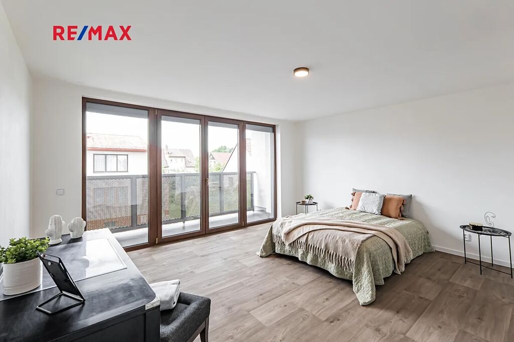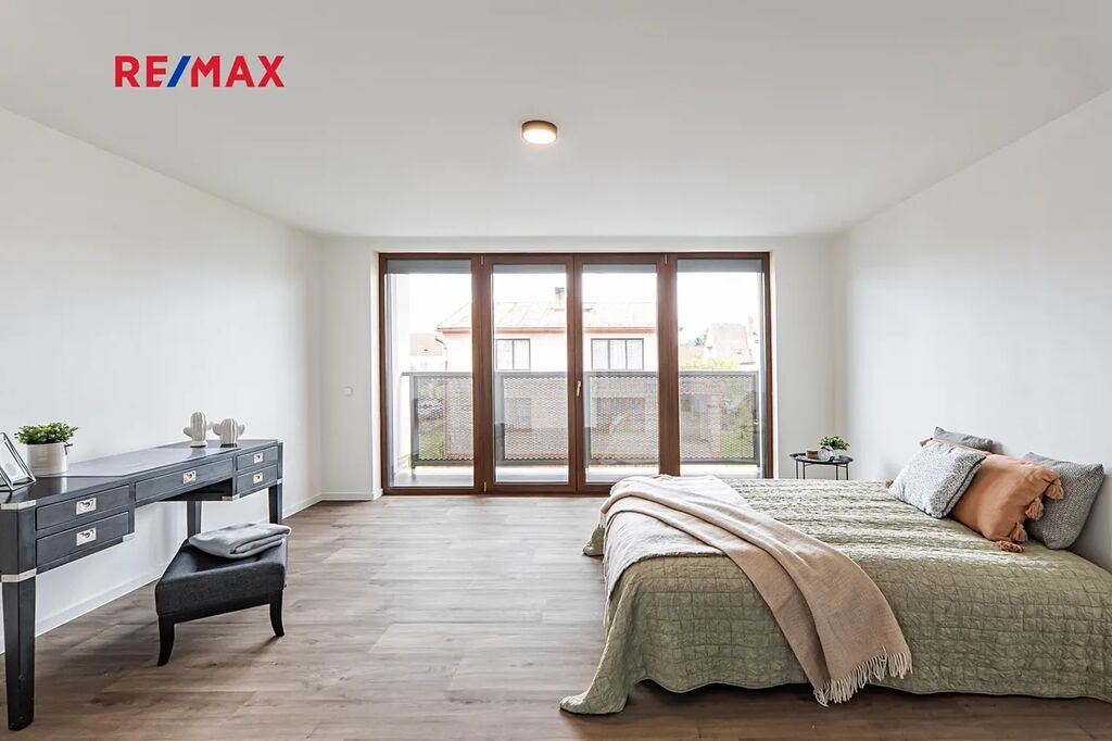První nadzemní podlaží nabízí elegantní ložnici s vlastním balkonem, koupelnu se sprchovým koutem, samostatné WC a hlavní obytnou část propojenou se stylově řešenou kuchyní a jídelnou. Samozřejmostí jsou špičkové spotřebiče, vestavěná vinotéka a praktická spižírna.