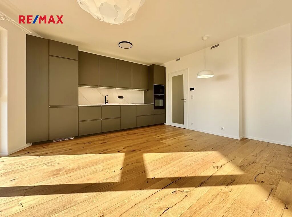 Hlavní místnost nabízí plně vybavenou kuchyň - myčka nádobí, indukční varná deska, digestoř, horkovzdušná pečící trouba, mikrovlnná trouba, lednice s mrazničkou, vše doplněno dostatkem úložného a pracovního prostoru. Dále jsou k dispozici prostorné skříně v předsíni i v ložnici. V obytných místnostech je dřevěná podlaha, v koupelně a na chodbě dlažba a celý byt je vybaven podlahovým vytápěním. Elegantní koupelna nabízí sprchový kout, umyvadlo, toaletu, topný žebříček, přípravu pro pračku/sušičku a úložnou skřínku pod umyvadlem. Velkoformátová okna s trojskly jsou doplněna přípravou pro zavěšení záclon a závěsů. Vstupní dveře jsou bezpečnostní (třída 3) a vnitřní dveře Hörmann mají nadstandardní výšku 210 cm.