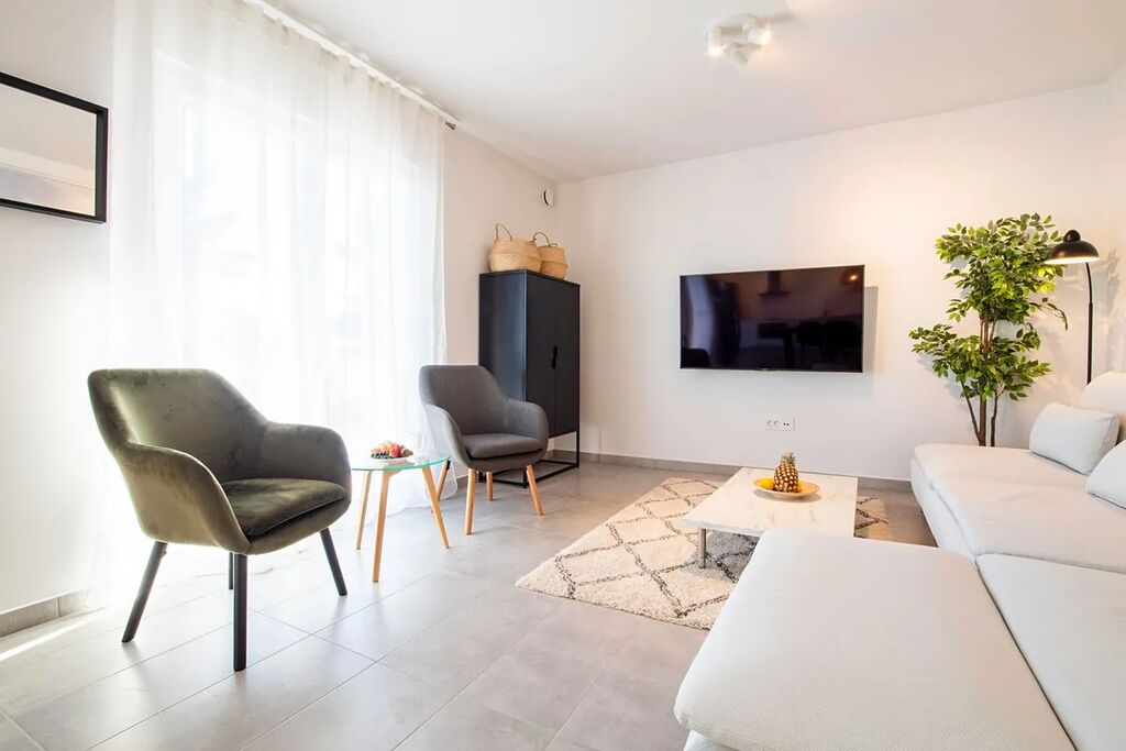 Díky své vynikající poloze, jen pár minut chůze od moře a blízkosti veškeré občanské vybavenosti, je apartmán ideální volbou jak pro příjemný rodinný život tak i k pronájmu.