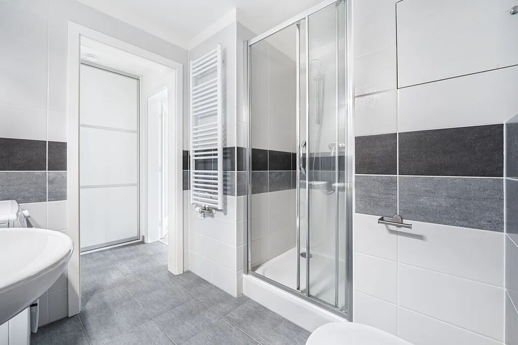 V bytě je ticho. A přesto se pořád větrá. A to díky rekuperaci, která do prostoru neustále přivádí čerstvý vzduch, aniž byste museli otevírat okna nebo přicházeli o teplo. Vzduch tu proudí tiše, přirozeně, bez průvanu. Na oknech najdete venkovní žaluzie s elektrickým ovládáním – v létě udrží byt příjemně chladný, večer zajistí tmu a klid pro nerušený spánek.