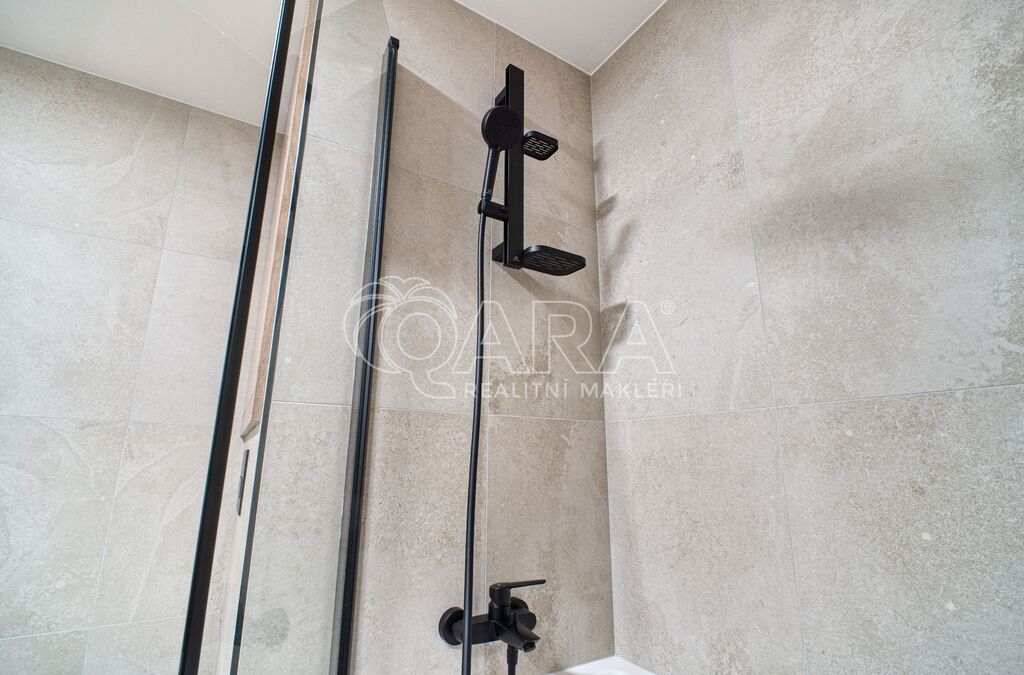 Prostorná koupelna a rohová kuchyň s úložným prostorem