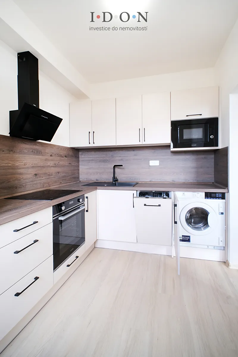 Rekonstrukce zahrnuje vinylové podlahy, nové omítky, zárubně vč. interiérových dveří, koupelnu se sprchovým koutem, kuchyňskou linku včetně spotřebičů ( zabudována lednice, mrazák, myčka na nádobí, pračka, vestavná indukční deska), nechybí tak nic.