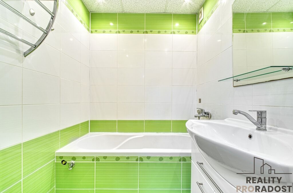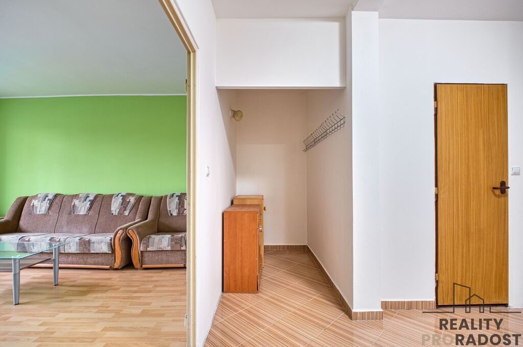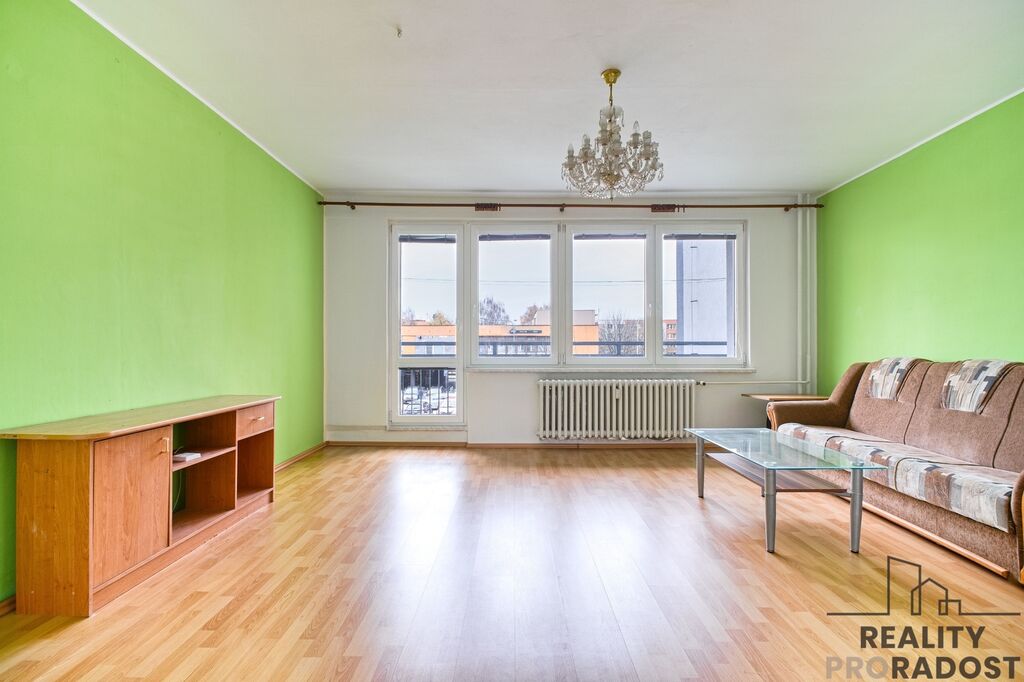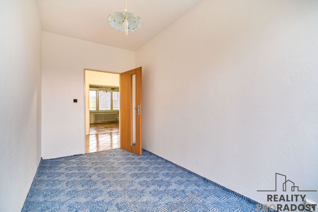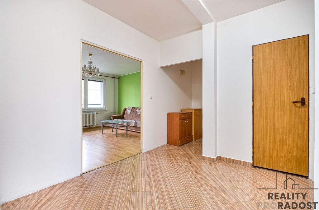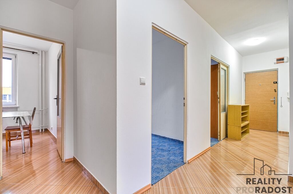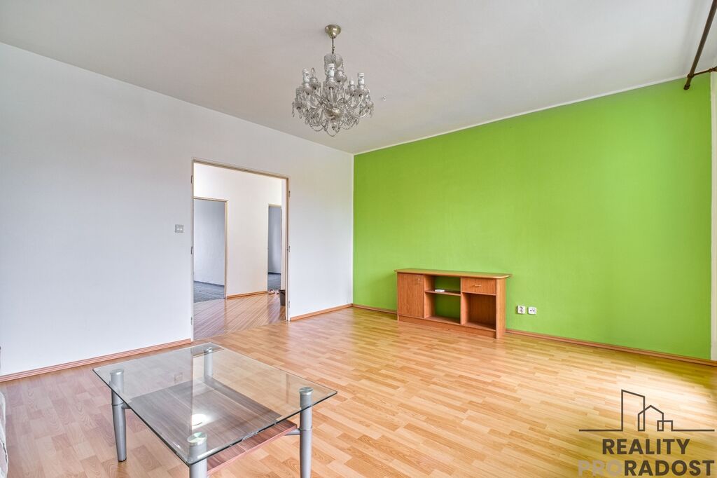 Benefitem bytu je prostorný obývací pokoj s výstupem na lodžii o velikosti 5 m2. V kuchyni je dostatek prostoru pro umístění jídelního stolu. Prostorná chodba nabízí množství úložného prostoru. Vybavení, které je na fotografiích je předmětem prodeje. Orientace bytu na 2 světové strany - obývací pokoj s lodžií na východ, pokoje a kuchyně na západ.